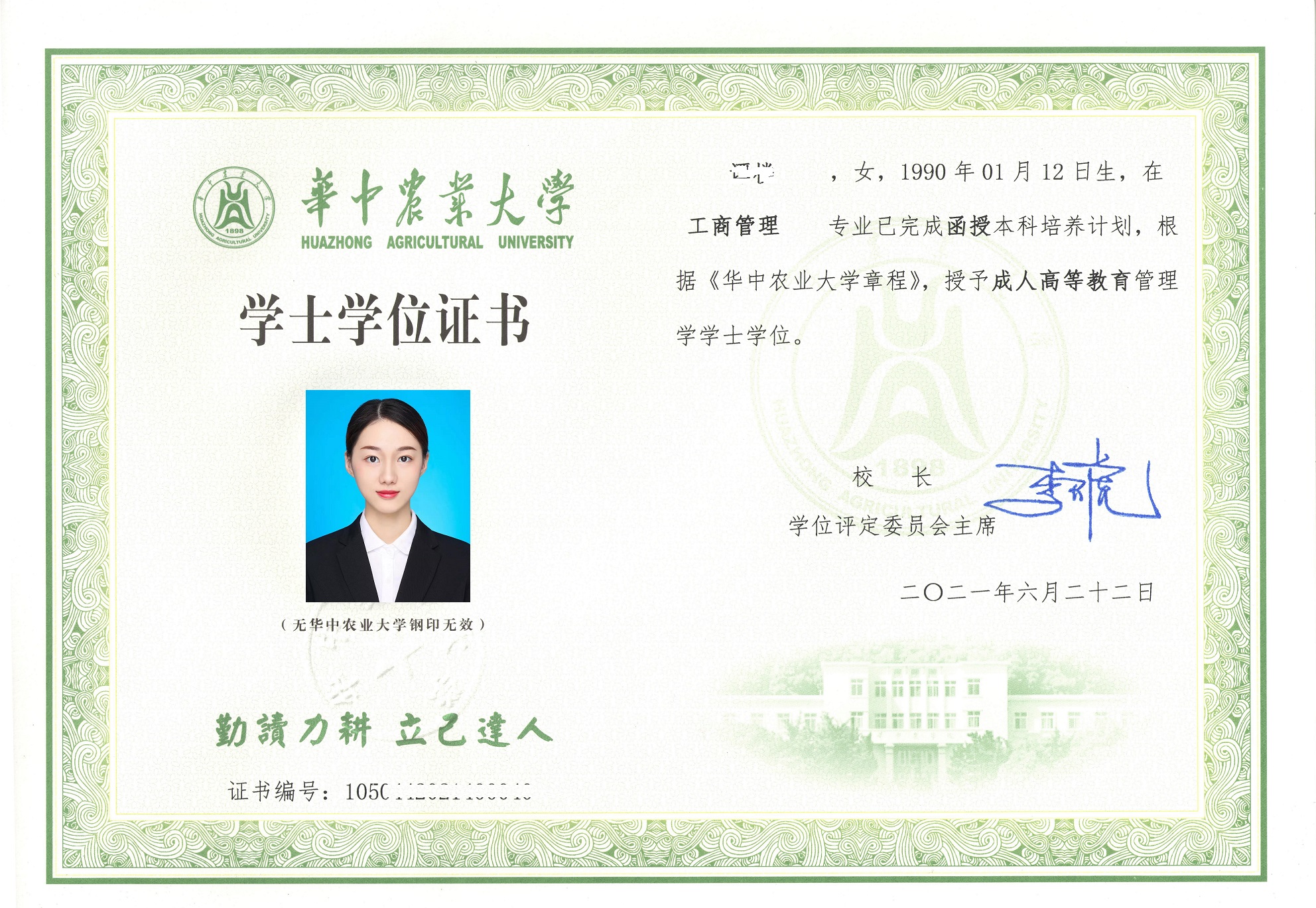1、學(xué)生修滿教學(xué)計(jì)劃規(guī)定的學(xué)分,通過相關(guān)實(shí)踐考核,成績(jī)合格,可獲得由教育部統(tǒng)一電子注冊(cè)的華中農(nóng)業(yè)大學(xué)成人高等教育畢業(yè)證書。